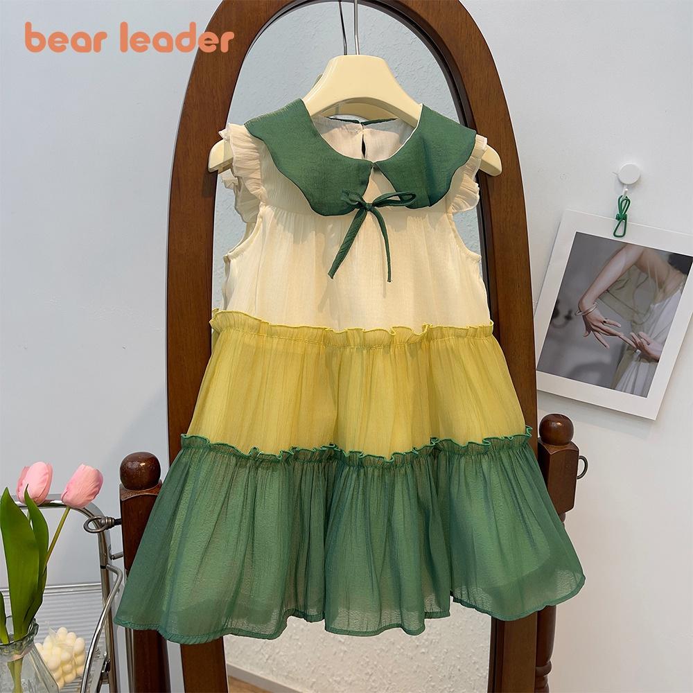 Платья Bear Leader для девочек, летняя сетчатая многослойная кружевная детская одежда трапециевидной формы без рукавов с бантом AM2602 2T