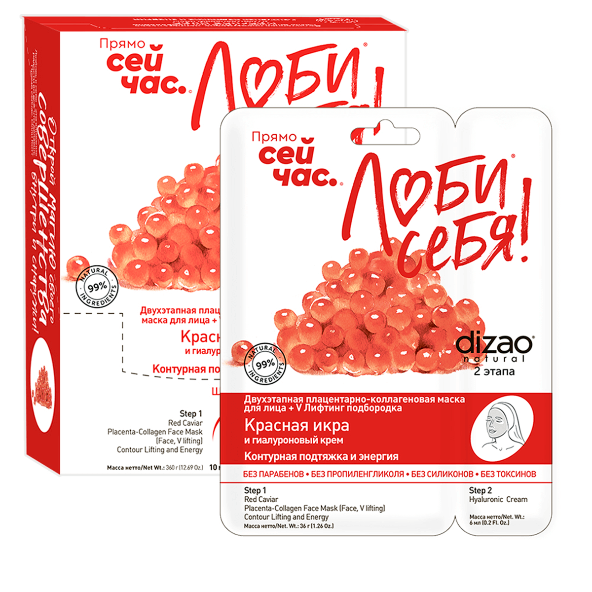 Плацентарно коллагеновая маска Красная Икра для лица, шеи, век, 2-х этапная, 10 шт, Dizao