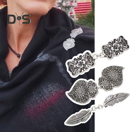 Плащ из сплава в стиле ретро, пряжка на воротнике, зажим в форме листа из искусственного пера, шелковый шарф, шаль, пряжка на талии, фиксированная брошь, зажим для ремня