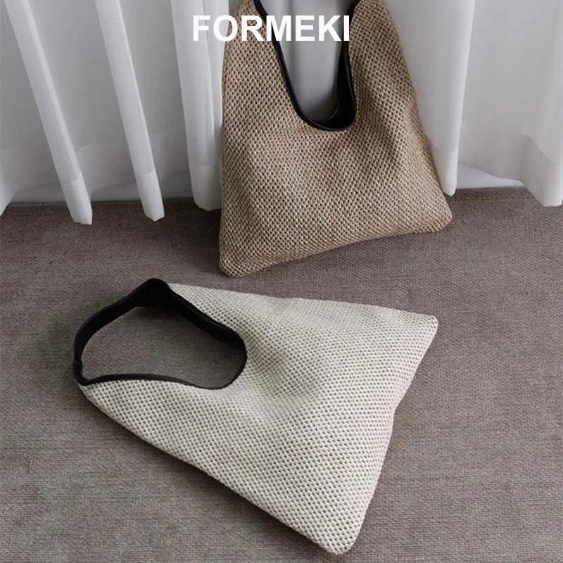 Плетеная Сумка через плечо Formeki в Корейском стиле, соломенная Праздничная сумка для побережья, большая женская сумка с вырезами