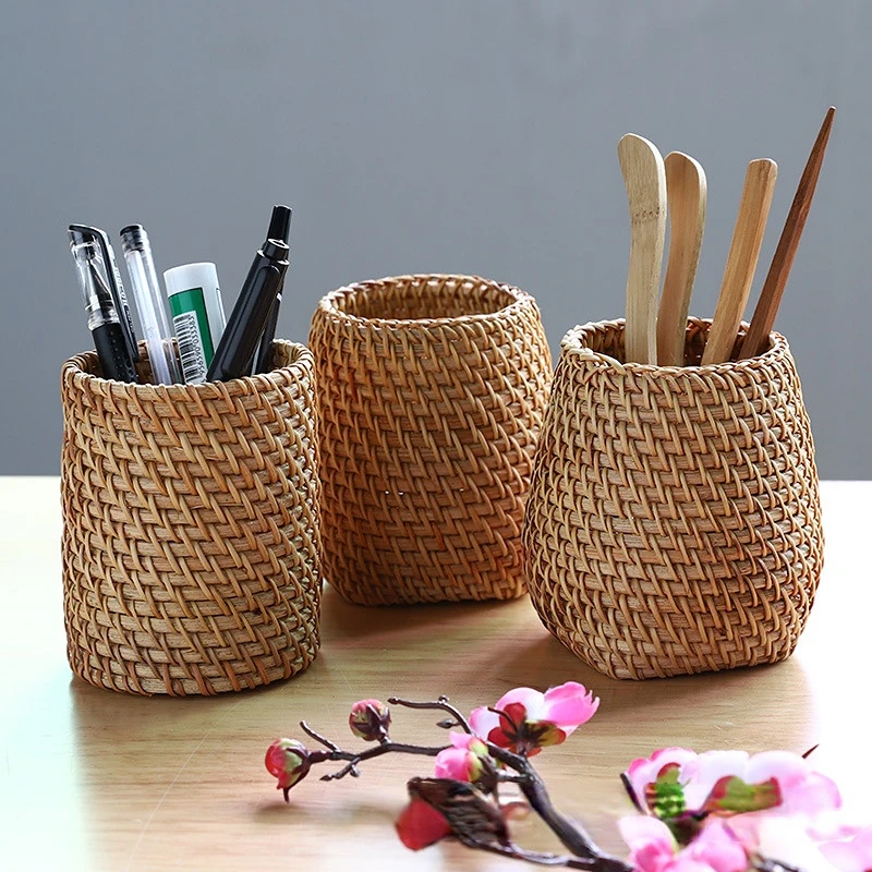 Плетеная корзина для хранения ручной работы из ротанга, инструменты для чайной церемонии, аксессуары, держатель для косметических ручек, ор...