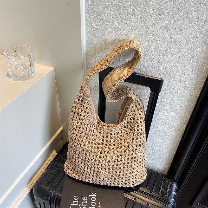 Плетеная соломенная сумка женская большой вместимости новая полая сумка на плечо для покупок ленивый ветер пляжная сумка для побережья коричневый