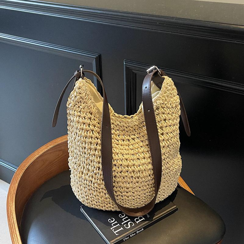 Плетеная сумка большой вместимости Женская новая модная сумка через плечо для поездок на работу Пляжная сумка для морского отдыха Плетеная соломенная сумка-тоут для женщин