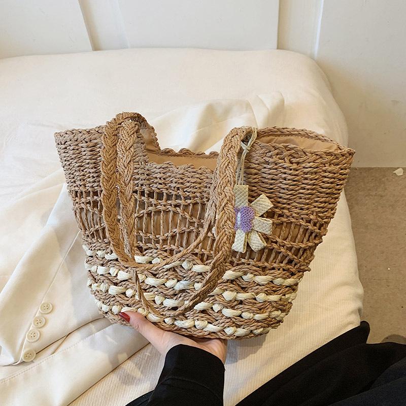 Плетеная сумка в стиле сада, праздничная плетеная сумка на плечо, большая вместимость, модная сумка через плечо хаки