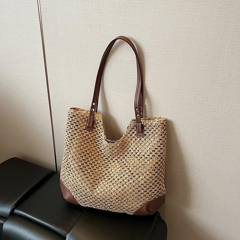 Плетеная сумка из травы, легкая сумка-тоут, нишевый дизайн, сумка через плечо, большая сумка, женская сумка-подмышка большой вместимости с прорезями. хаки