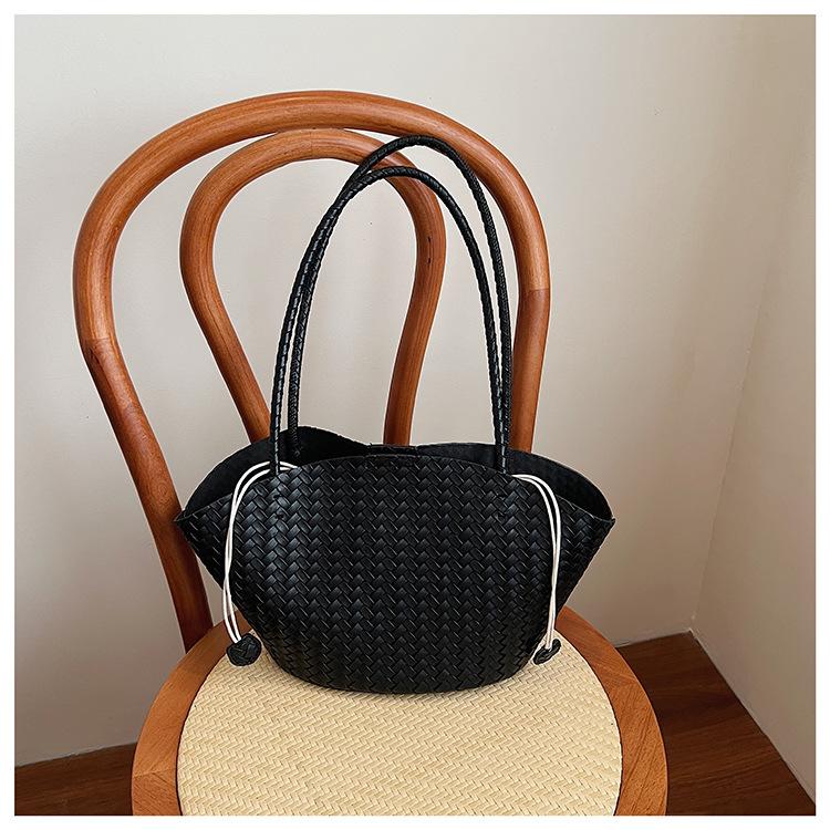 Плетеная сумка-корзина для овощей большой вместимости женская летняя новая на плечо подмышку сумка для мамы сумка-тоут для поездок на работу чёрный