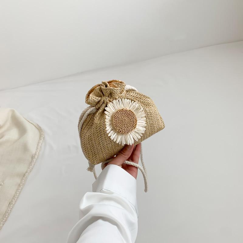 Плетеная сумка новая трендовая 2025 весна и лето соломенная плетеная милая сумка-ведро простая личность девушка соломенная плетеная на плечо сумка-мессенджер хаки