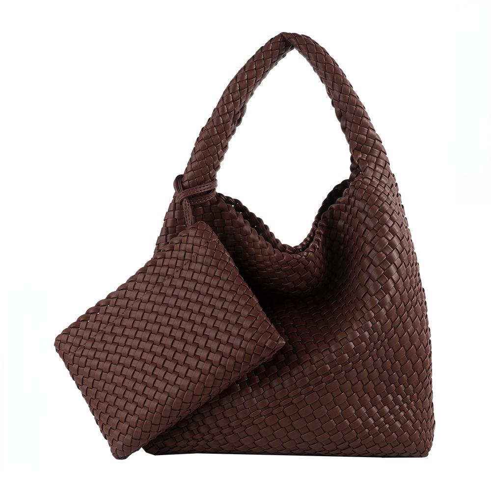 Плетеная сумка-тоут женская кожаная большая емкость композитные сумки на одно плечо ручная работа (30cm<Max Length<50cm) кофейный