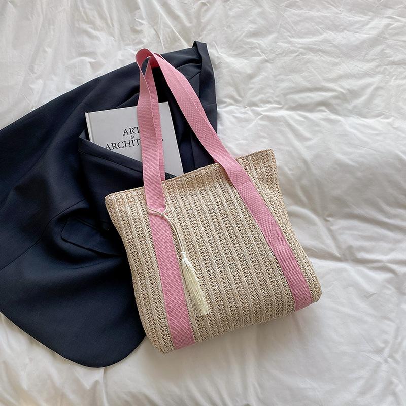 Плетеная сумка через плечо соломенная сумка большая вместительная летняя сумка новая женская универсальная повседневная сумка через плечо розовый