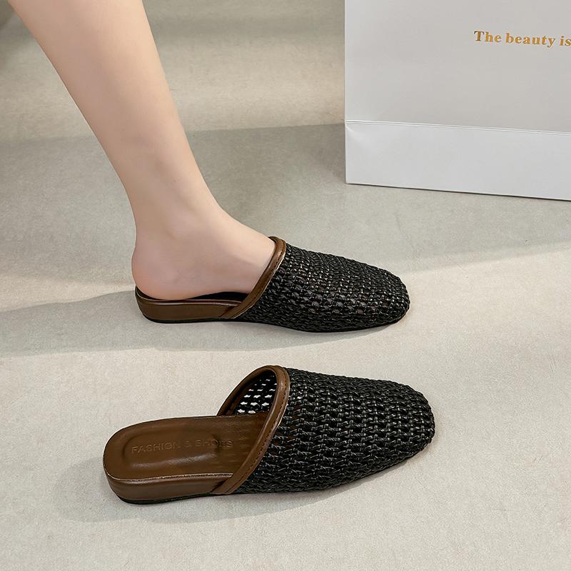Плетеные женские тапочки, повседневные лоферы, женские мюли, плоские сандалии, тренд лета 2025, комфортные, из мягкой кожи, мелкие, нарядные zapatos 39 чёрный