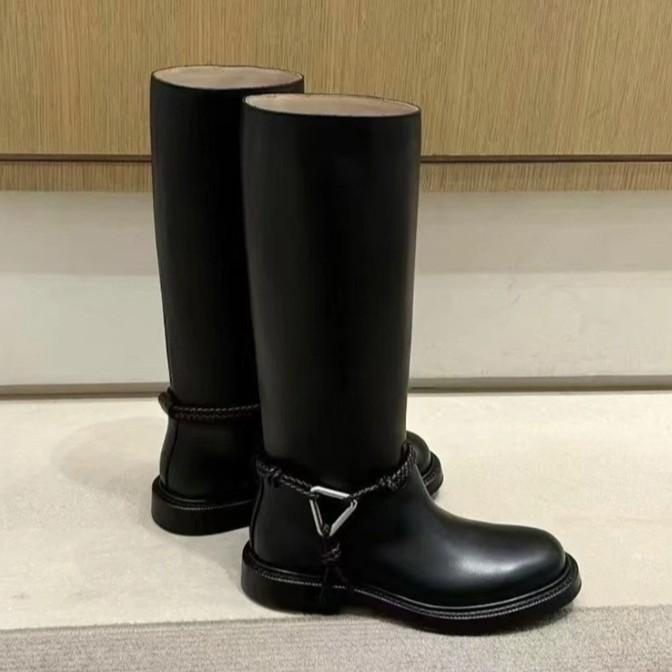 Плетеные ремешки Высокие рыцарские сапоги Женские широкие голенища Тонкий круглый носок Толстая подошва Сапоги до колена 40 чёрный