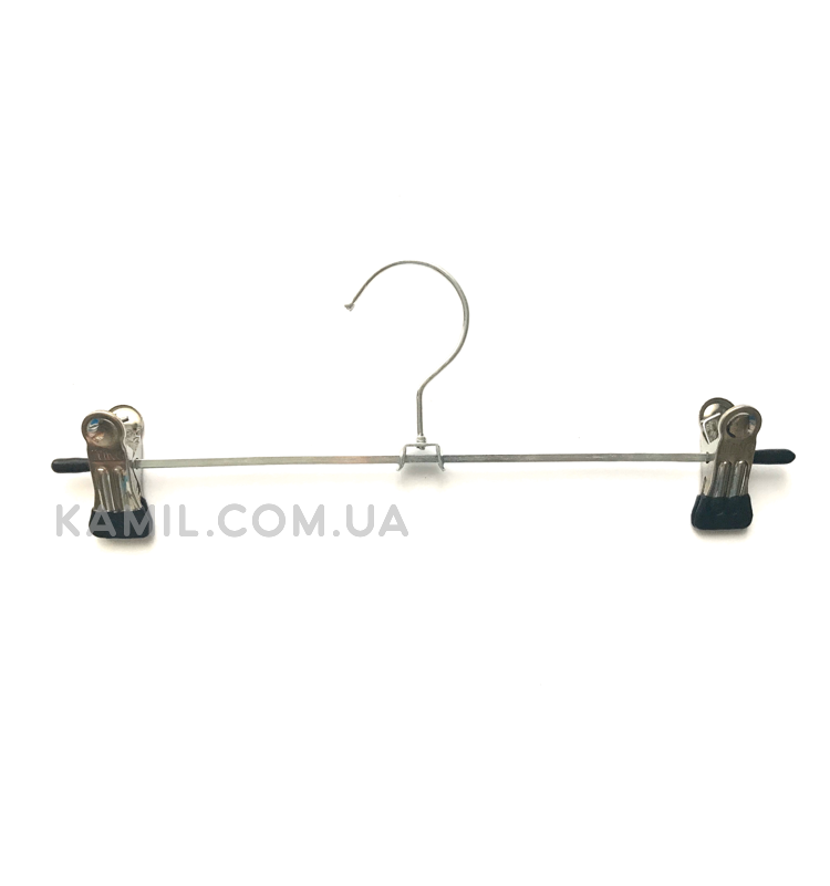 Плечики вешалки тремпеля для брюк и юбок металлические с прищепками, длина 30 см (никель, силикон)