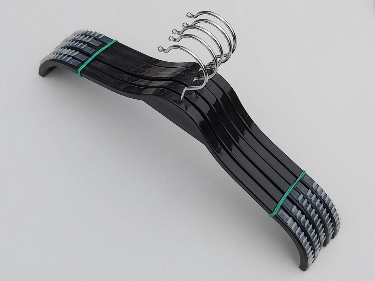 Плечики LT903 глянцевый черного цвета, длина 38 см, ширина плеча 1,2 см, в упаковке 5 штук.