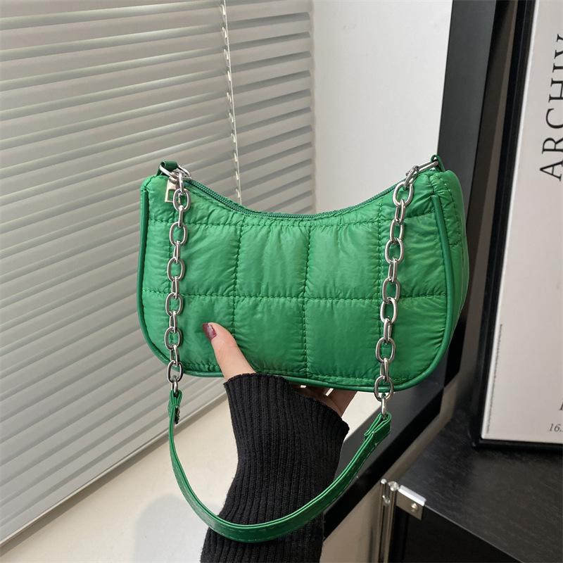 Плиссированная зимняя новая хлопковая сумка женская модная трендовая повседневная для работы популярная цепочка персонализированная вышивальная нить сумка через плечо зелёный