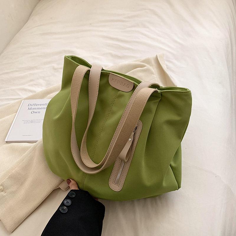 Плиссированная парусиновая сумка Женская сумка Однотонная сумка через плечо Большая сумка зелёный