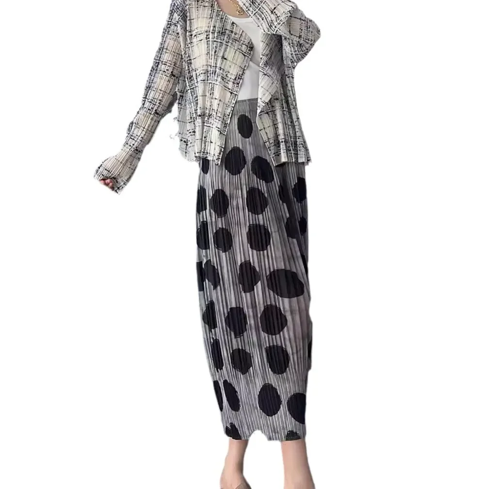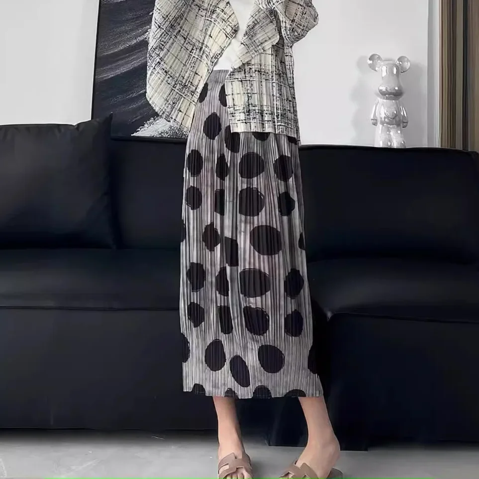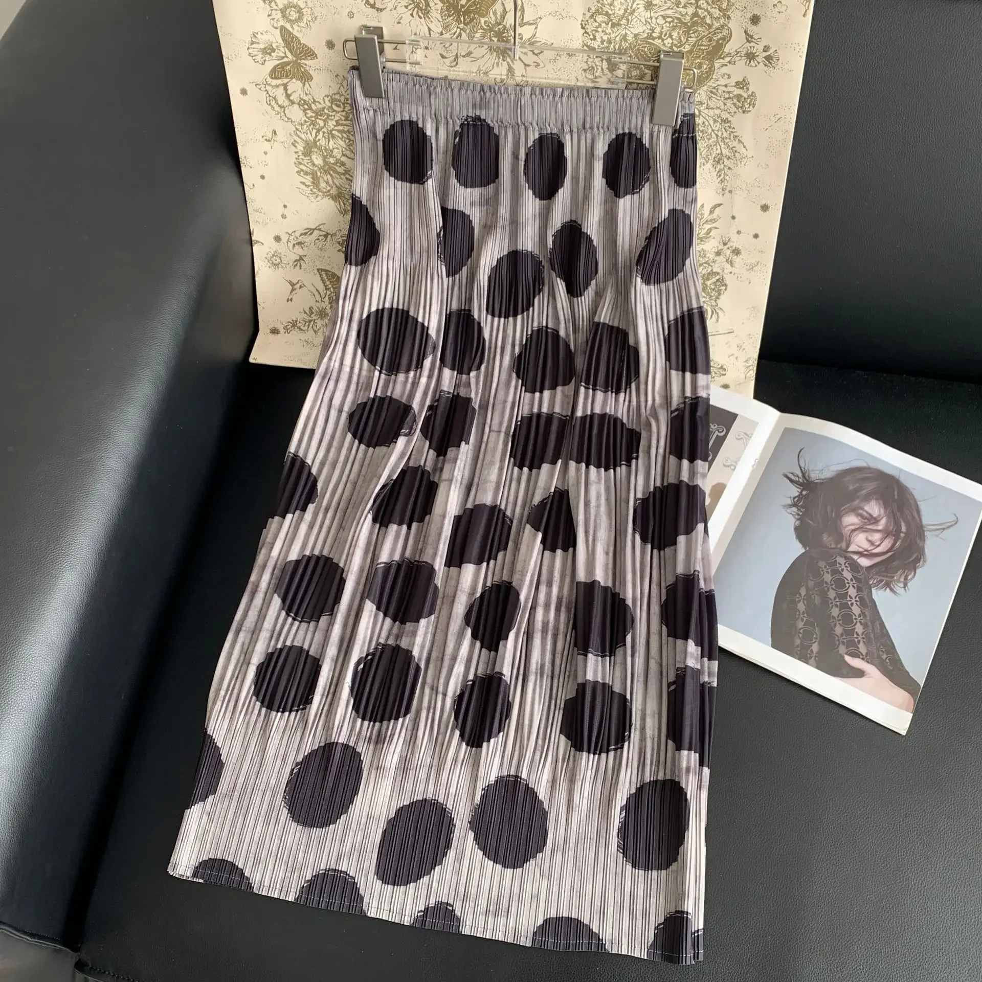Плиссированная элегантная юбка-бюстье в горошек, женская летняя новая высококлассная Яркая юбка с эластичным поясом и принтом, 2024
