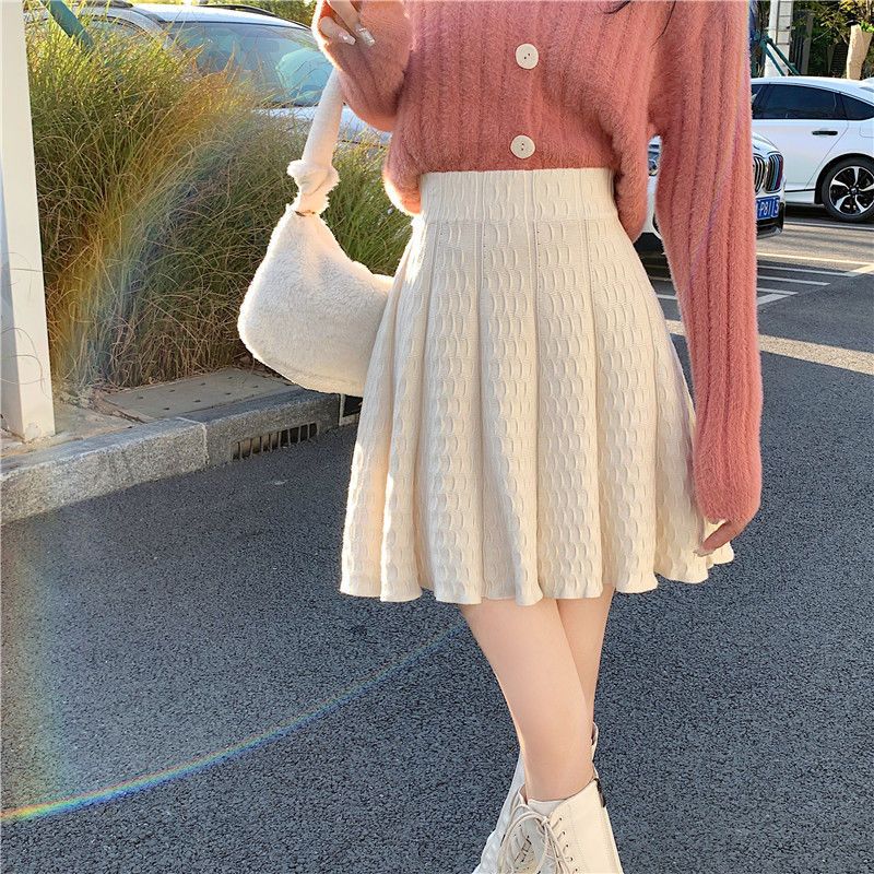 Плиссированная юбка женская осенне-зимняя трикотажная юбка трапециевидной формы женская 2022 однотонная повседневная короткая юбка грушевидной формы с небольшой высокой талией