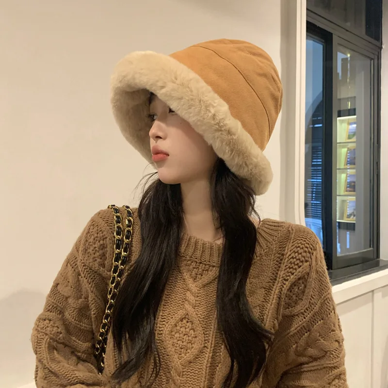 Плотная зимняя купольная Панама, Повседневная Уличная шерстяная плюшевая шапка, теплые женские шапки, осенне-зимние однотонные защитные уш...