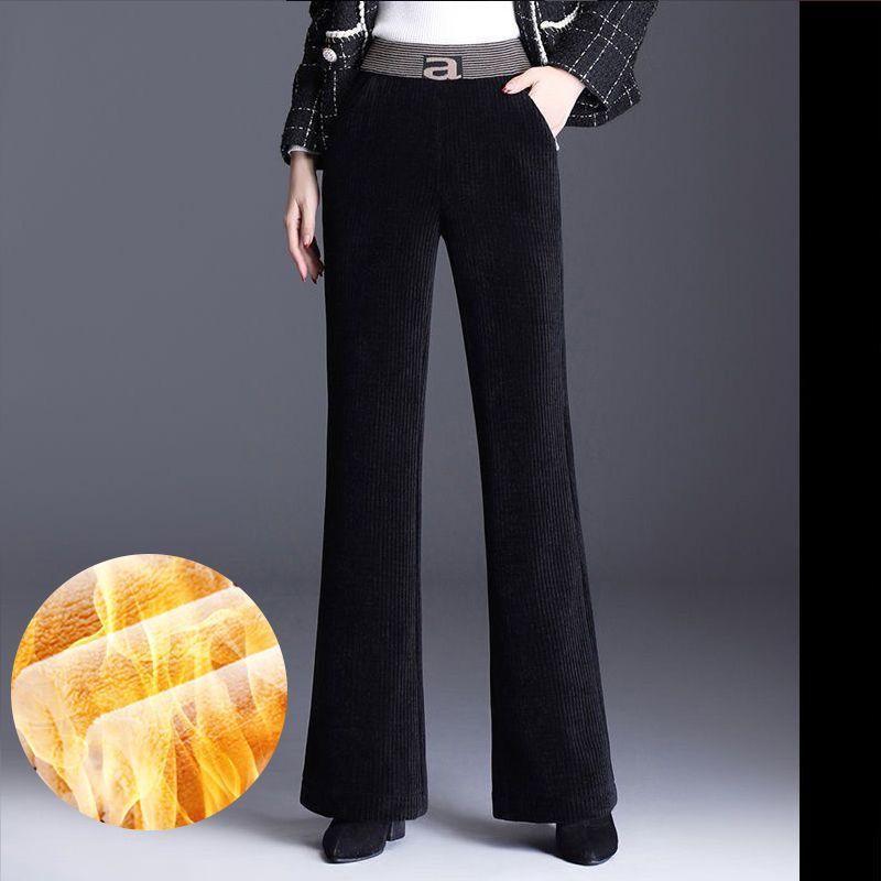 Плюс Бархат Шенилл Широкие брюки Осень и Зима Вельвет С высокой талией Толстые Брюки Свободные Повседневные Брюки M чёрный