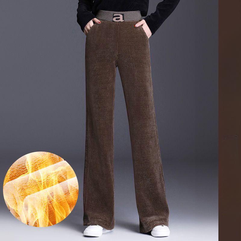 Плюс Бархат Шенилл Широкие брюки Осень и Зима Вельвет С высокой талией Толстые Брюки Свободные Повседневные Брюки XXXL коричневый