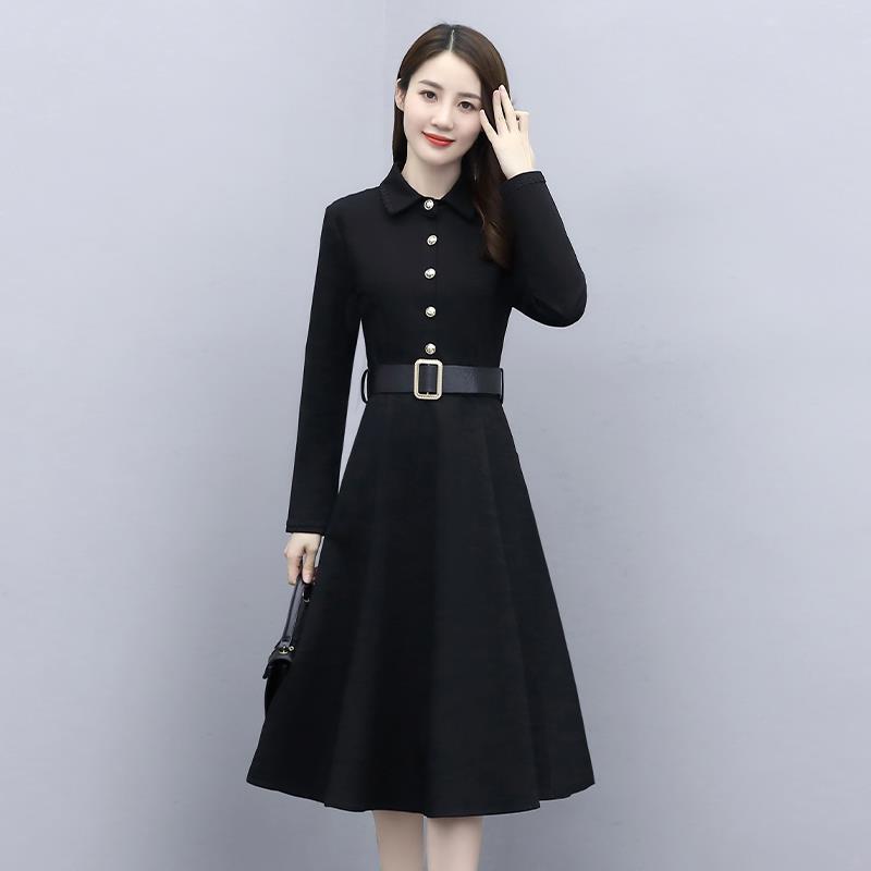 Плюс Размер Длинный Рукав Женское Платье Утягивающее Талия Дизайн Весна Осень Стиль Платье-рубашка для Полных Сестер Средняя Длина S