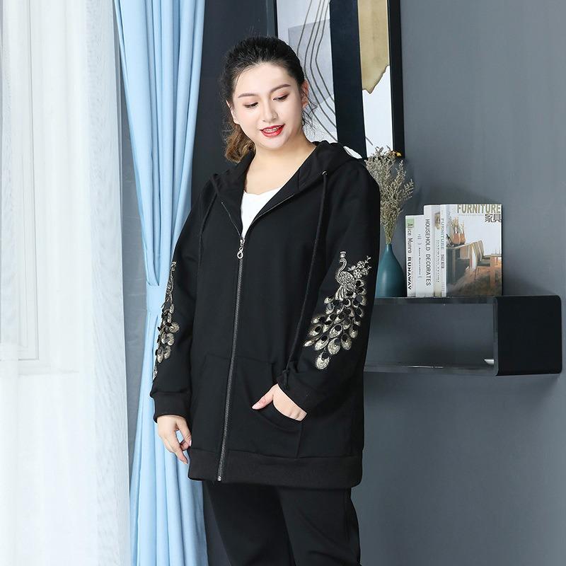 Плюс Размер Женская Новая Осенняя Куртка С Капюшоном Длинные Рукава Кардиган Вышивка Средней Длины Молния Флисовая Куртка 7XL
