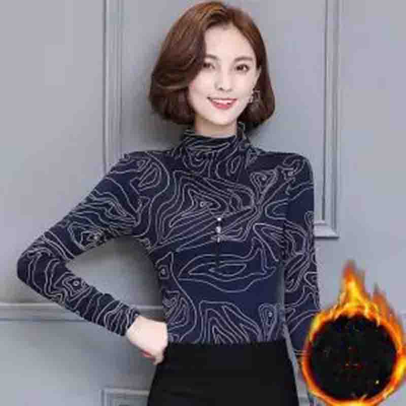 Плюс бархатная толстая рубашка с высоким воротником, женская зимняя модная универсальная тонкая футболка с длинными рукавами и принтом, топ XXXL