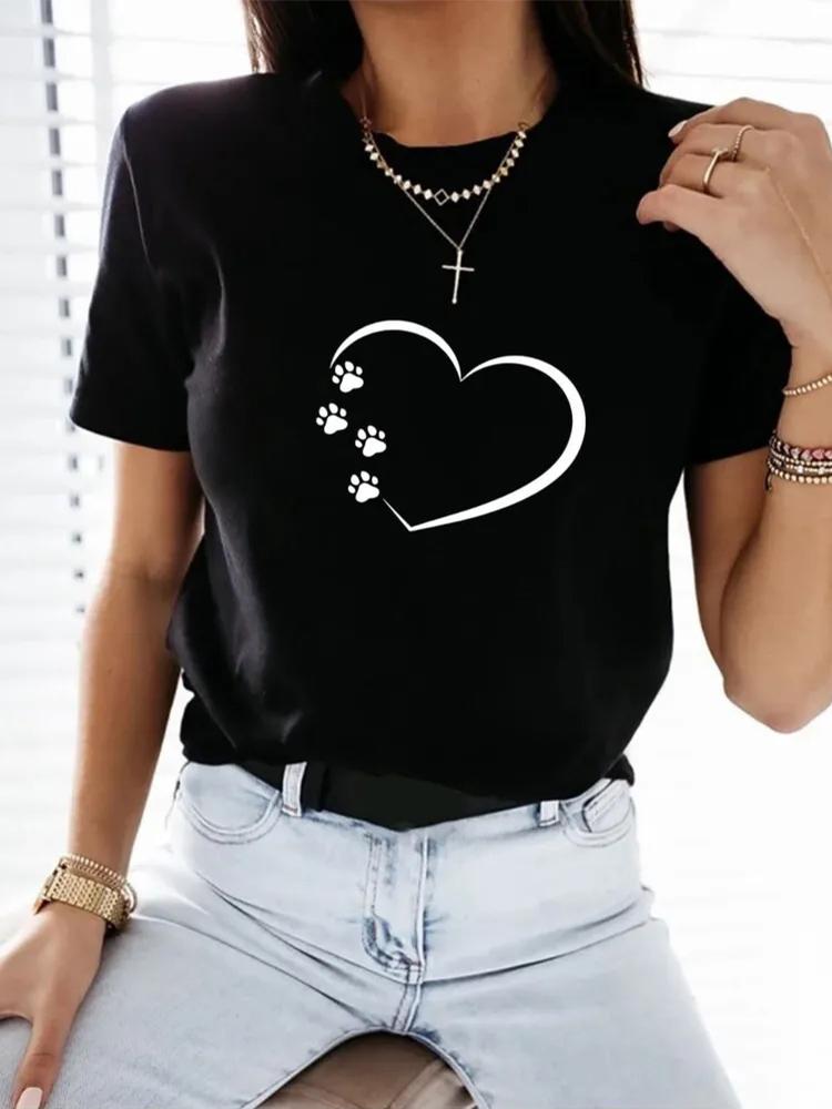 Плюс размер 100% хлопок летние большие женские футболки с сердечками повседневные топы с круглым вырезом футболки