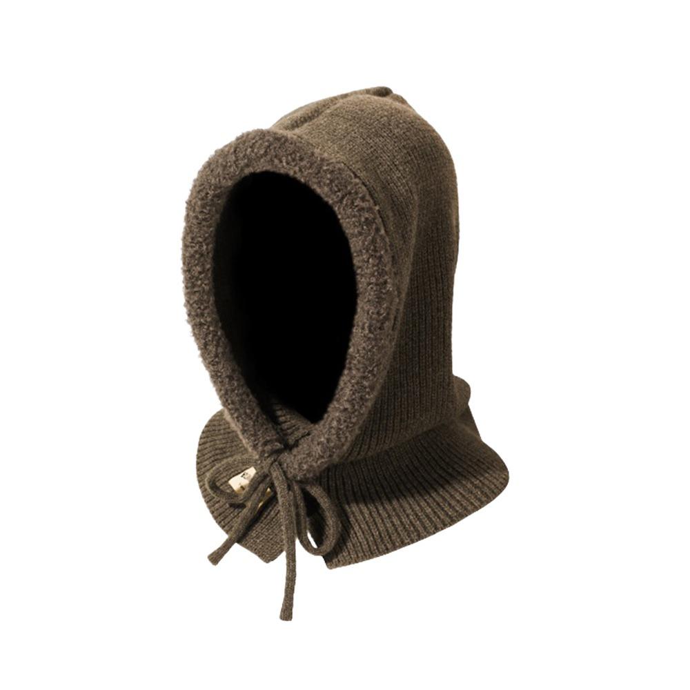 Плюшевая вязаная шапка с защитой шеи, шапка на шнуровке, новый капюшон-шарф, осень-зима кофейный