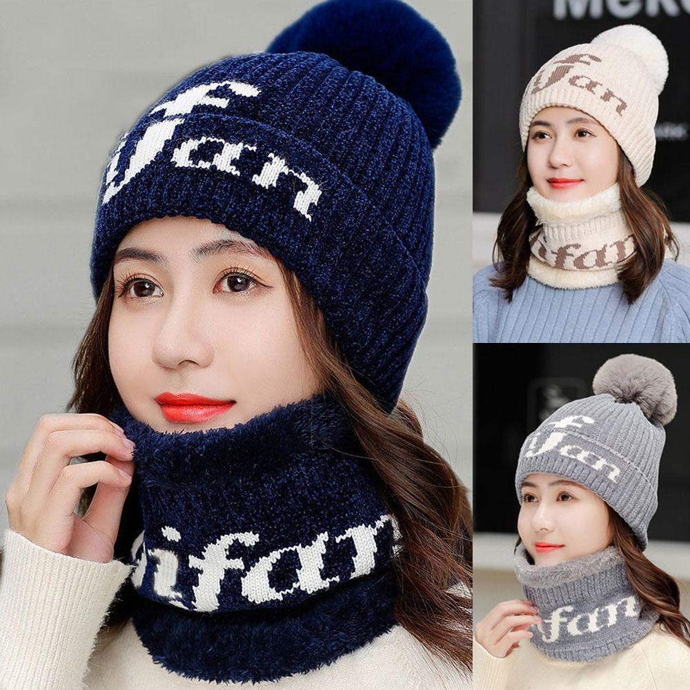 Плюшевая вязаная шапка с шарфом, толстая шапка, комплект шарфов, новая мода, шапочки, шарф, комплект на открытом воздухе