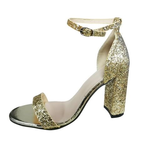 Womens Sandals Fashion Womens Chunky High Heels Breathable Lace Up Rhinestone Shoes Casual Sandals Women S Sandals Pu Gold 38