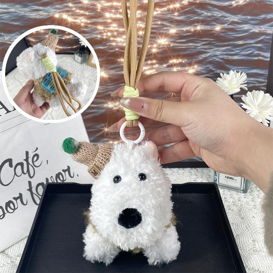 Плюшевая кукла щенок вест-хайленд с каракулями, красочная веревочная подвеска-брелок для сумки, подвеска-кукла, детский подарок Height approx. 11cm
