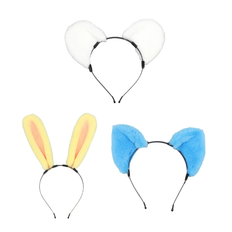 Плюшевая повязка на голову с кошачьими кроличьими ушками ручной работы, женская повязка на голову из искусственного меха с ушками зверя, обруч для волос в стиле аниме, повязка на голову для косплея, вечерние головные уборы для ролевых игр