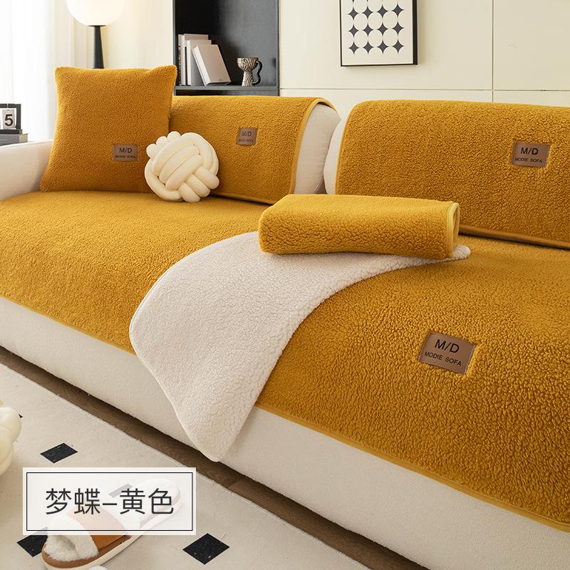 Плюшевая подушка для дивана из овечьей шерсти, новинка осени и зимы, утолщенная подушка для сиденья, одеяло, кожа, нескользящая, универсальный чехол на четыре сезона, полотенце 90*70cm