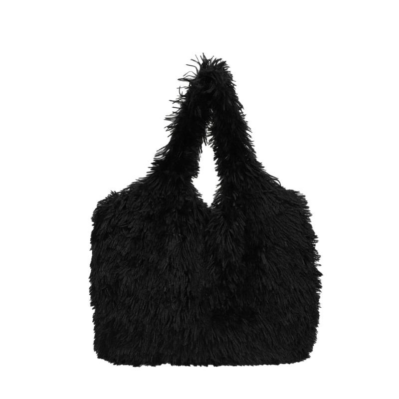 Плюшевая сумка для девочки однотонная портативная сумка подмышку осенняя новая популярная модная универсальная женская сумка one size fits all чёрный