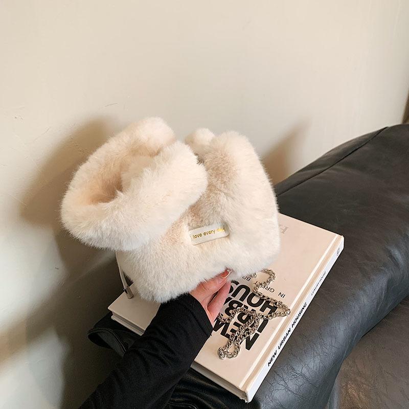 Плюшевая сумка женская 2025 новая осень и зима нишевая легкая роскошь высокий класс ручная сумка плечевая кроссбоди сумка-ведро белый