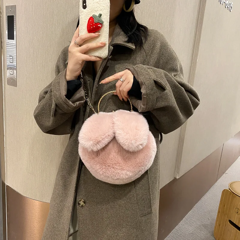 Плюшевая сумка, новая мультяшная сумка, Женская Роскошная Сумка через плечо с кроличьими ушками, миниатюрная сумка через плечо, милый кошел...