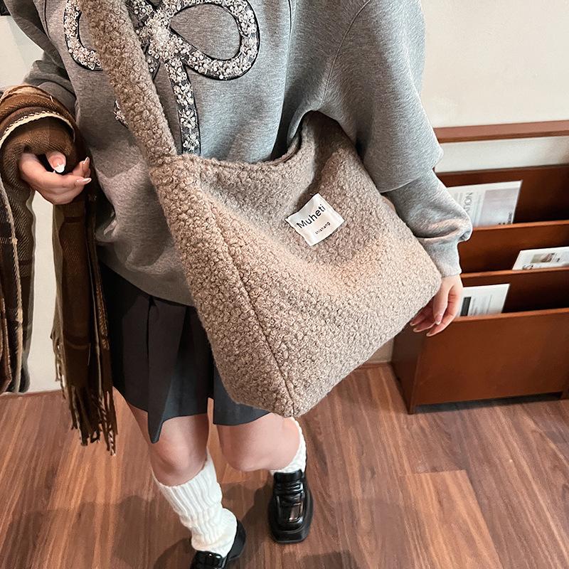 Плюшевая сумка-тоут для покупок, уличная, портативная, на плечо, женская, новая, подарок на день рождения, пушистая сумка-мессенджер для девочек, квадратная 30*12*31 хаки