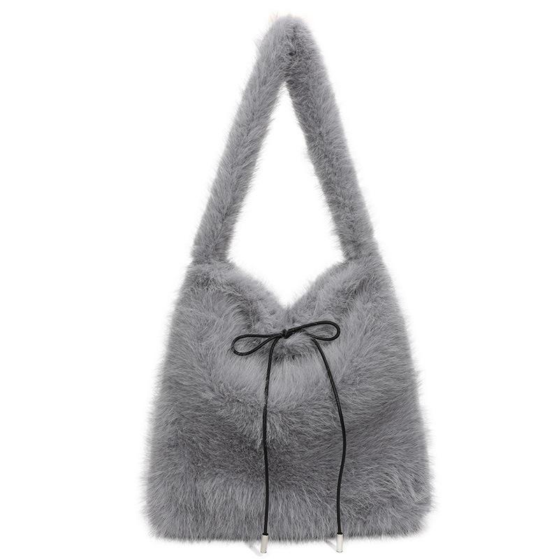 Плюшевая сумка через плечо женская большой вместимости новая осенне-зимняя однотонная текстурная повседневная простая плюшевая сумка сумка под мышкой серый