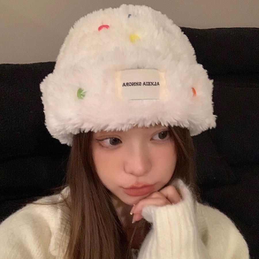 Плюшевая шапка для женщин на зиму, теплая шапка, закрывающая голову и лицо, маленькая вязаная шапка, модная и универсальная, пушистая защита для ушей, теплая шапка One size