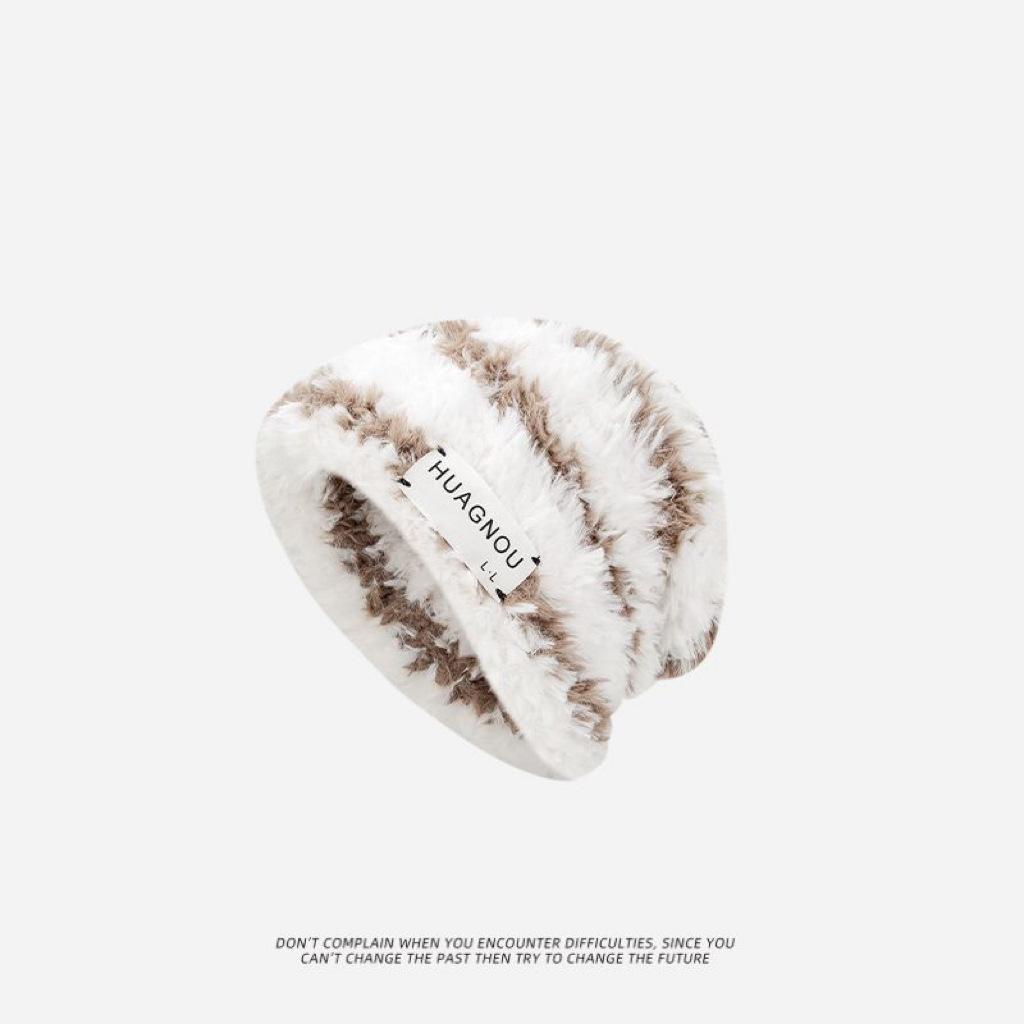 Плюшевая шапка женская зимняя милая с медвежьими ушками полосатая контрастного цвета новая милая контрастного цвета вязаная шерстяная шапка