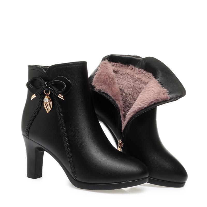 Плюшевые бархатные ботильоны на высоком каблуке Осень Зима Новые женские хлопковые туфли Молния Черные Водонепроницаемые Толстый каблук Одинарные короткие туфли 41(Foot25.5cm)