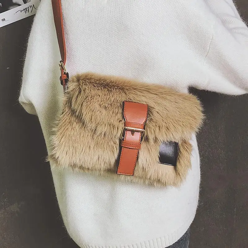 Плюшевые большие сумки OLUOLIN, модная женская сумка большой вместимости на одно плечо, пушистая сумка, осень/зима, уличная Женская широкополос...