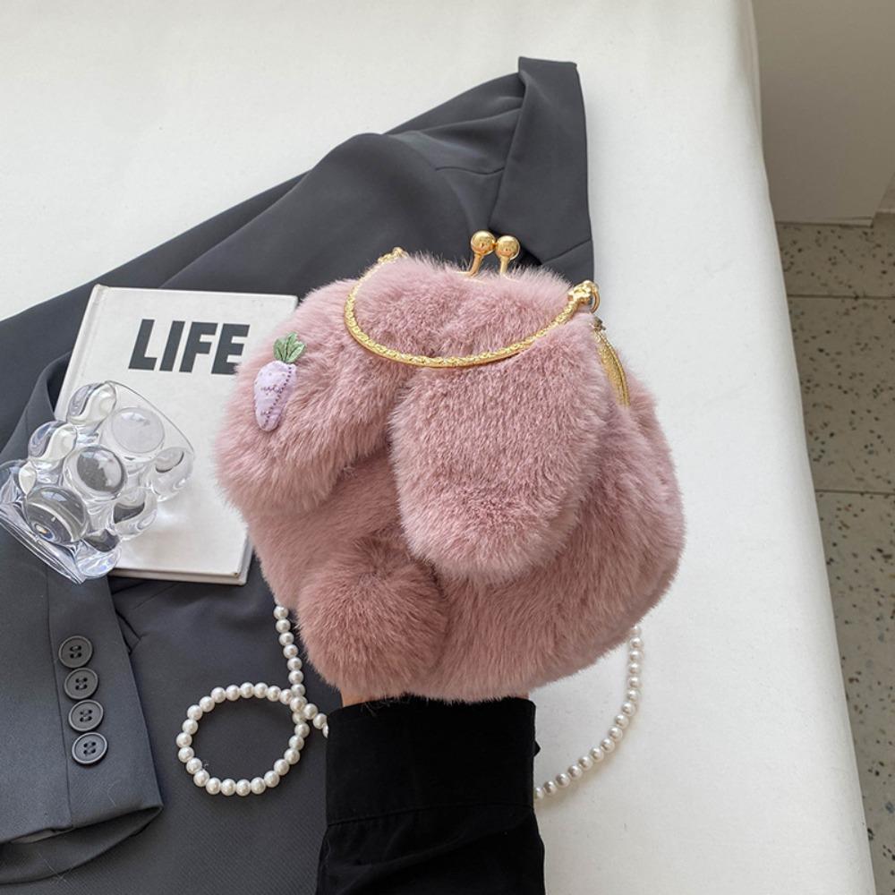 Плюшевые сумки через плечо в виде кролика, большая вместительная сумка с заячьими ушками на плечо, сумка с зажимом для ушей кролика, сумка для покупок