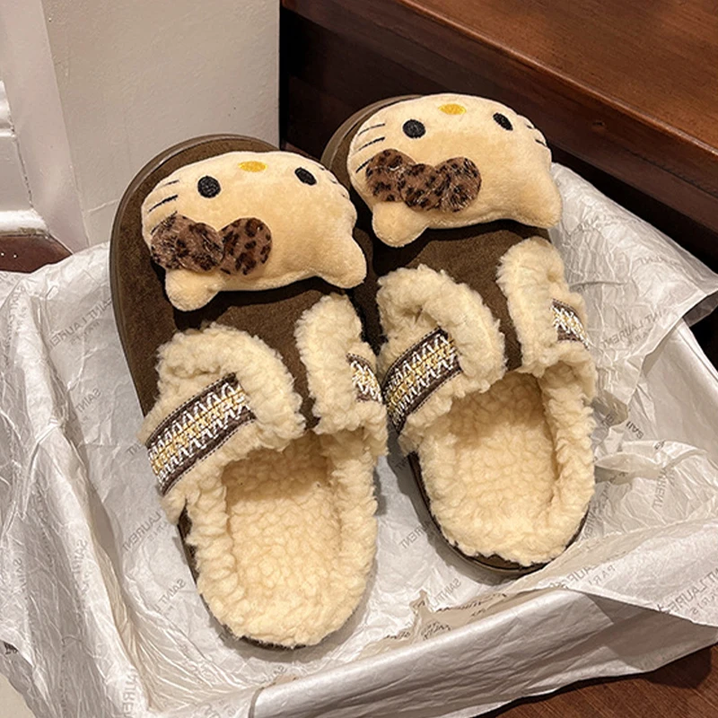 Плюшевые тапочки для девочек в стиле аниме «Hello Kitty», кавайные осенне-зимние домашние теплые хлопковые тапочки, домашняя милая домашняя обувь с героями мультфильмов, подарки