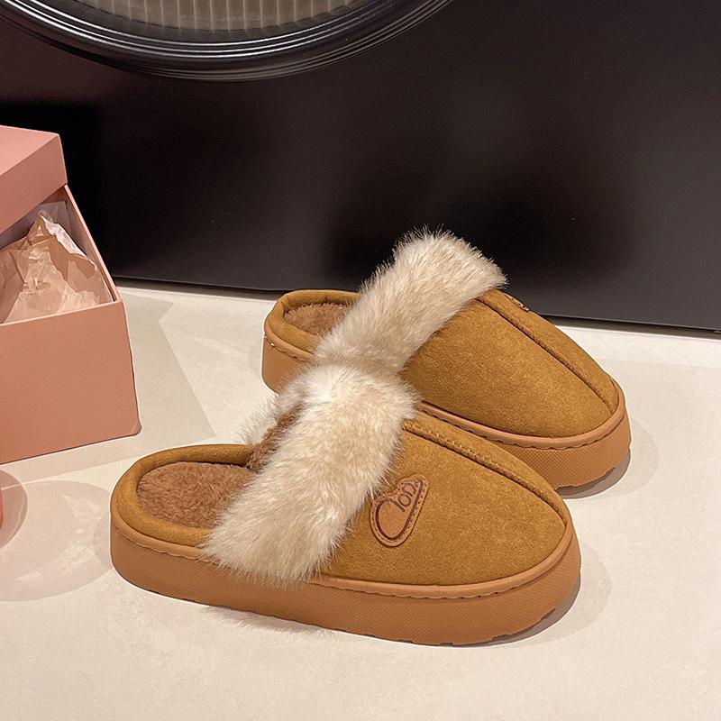 Плюшевые хлопковые тапочки женские осенне-зимние модные с пряжкой на ремне домашние нескользящие супертеплые не линяют толстая подошва плюшевые тапочки 36