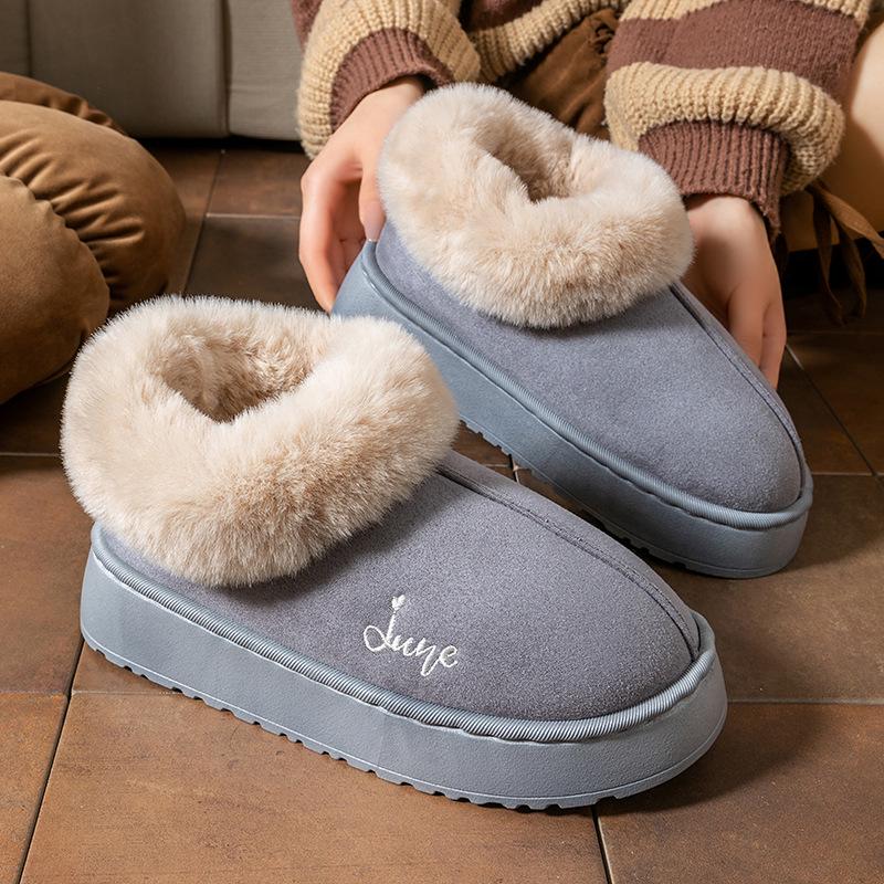 2023 Winter Fulffy Fur Slippers Men Plush Fleece Flat Slippers Sweet Thick Soled Indoor Cotton Slippers Home For Couple Shoes