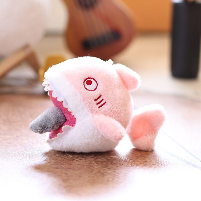 Плюшевый брелок Акула с вытягивающимся вращающимся хвостом игрушка ПП хлопок подарок мягкий розовый