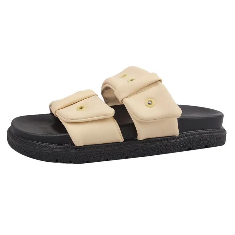 Пляжная обувь, блестящие шлепанцы, женские летние туфли на низкой платформе, модные мягкие римские босоножки с пряжкой на ремне, тапочки 40 жёлтый