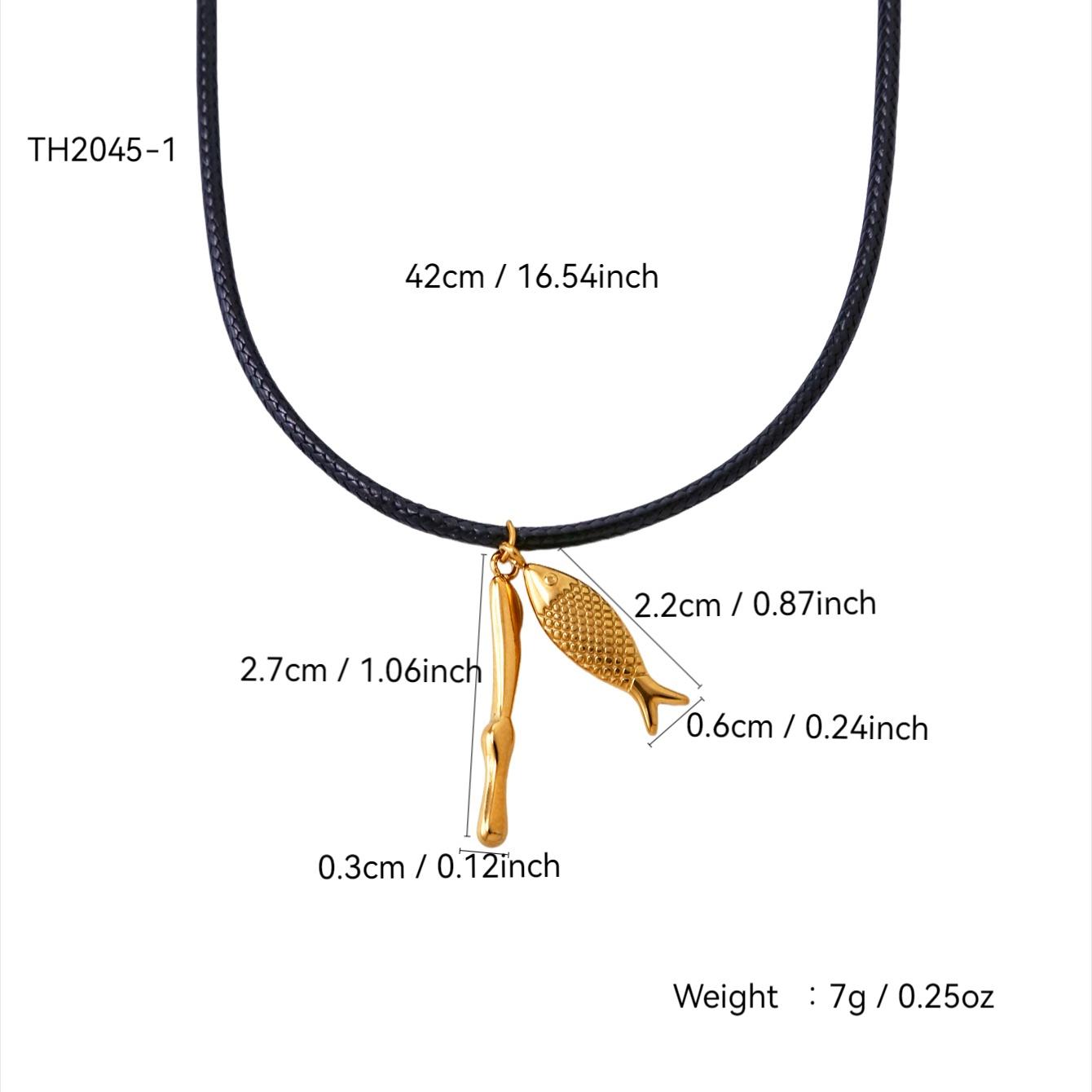 Пляжная серия Модная простая личность Нержавеющая сталь Позолоченная 18К Подвеска для рыбалки Ожерелье для мужчин и женщин